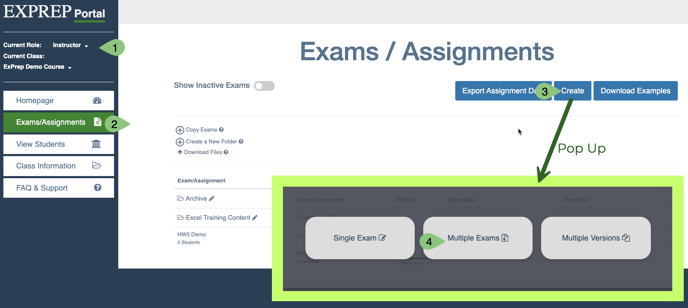 - Upon successfully creating multiple exams, a folder will be created with all the assignments within the folder. Initial folder names will provide details on when the folder was created but the name can be edited by clicking the pencil icon.