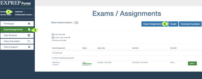 - Navigate to Exams/Assignments tab