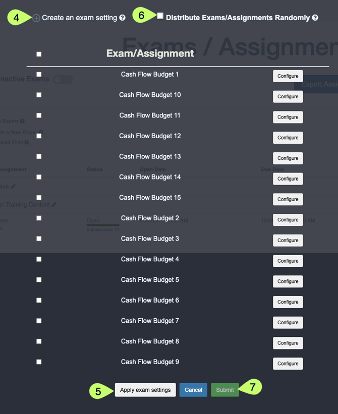 - Select Create an exam setting to quickly apply the same assignment settings to all versions